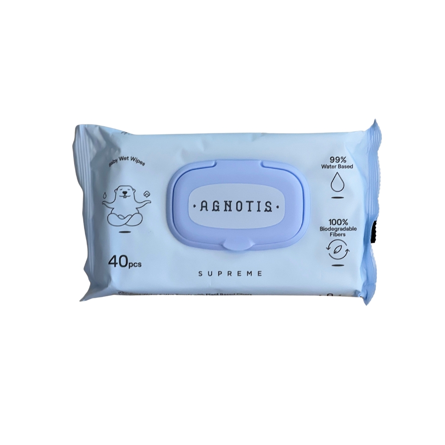 Μωρομάντηλα της εταιρείας Agnotis, ασφαλή για τον καθαρισμό και την αποφυγή των ερεθισμών της ευαίσθητης βρεφικής επιδερμίδας.